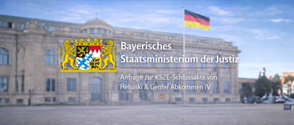 München. Ein bei der Internationalen Organisation Völkerrecht (IOV) registrierter Zivilist hat sich mit einer formellen Anfrage zur innerstaatlichen Umsetzung der KSZE-Schlussakte sowie des Genfer Abkommens IV an das Bayerische Staatsministerium der Justiz gewandt.