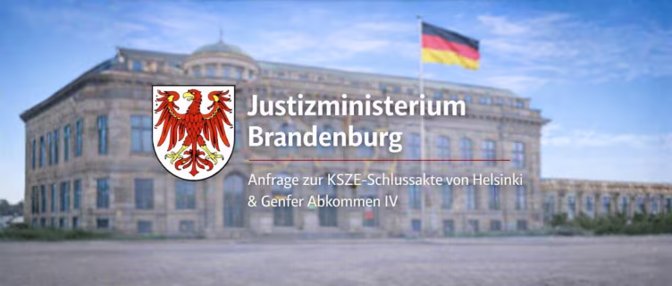 Potsdam. Ein bei der Internationalen Organisation Völkerrecht (IOV) registrierter Zivilist hat das Ministerium der Justiz und für Digitalisierung des Landes Brandenburg um Auskunft zur innerstaatlichen Umsetzung völkerrechtlicher Verpflichtungen ersucht. Gegenstand der Anfrage waren die Bedeutung der KSZE-Schlussakte von Helsinki, die Grundsätze der UN-Resolution 217 A (III) – Allgemeine Erklärung der Menschenrechte – sowie die Verpflichtungen aus dem Genfer Abkommen IV, insbesondere die Schulungs- und Bekanntmachungspflichten nach Artikel 144.